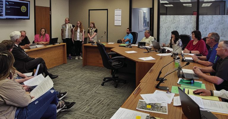 CherryRoad Media Publisher Jeremy Gulban cut the ribbon celebrating the current location of the Nebraska City News-Press Office at 109 S. 9th St. on Thursday, April 13. Pictured on either side of Gulban, from left, are Betty Travis, advertising sales; Kirt Manion, editor; Julie Davis, reporter; Phyllis Buell, columnist; and Vanessa Rudolph, advertising sales. The noontime event offered guests light refreshments and the opportunity to meet Gulban during his first visit to the News-Press office.