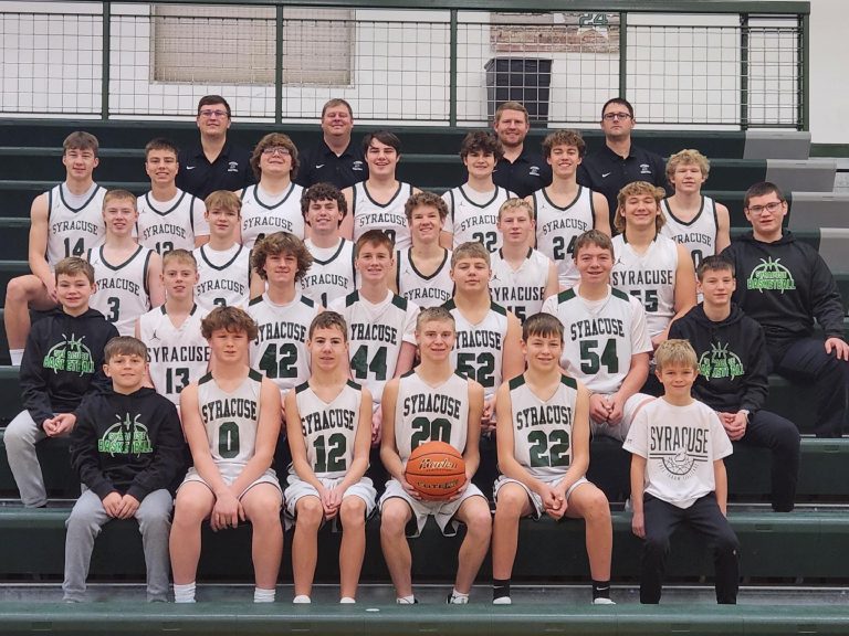 Syracuse-Dunbar-Avoca Boys BasketballFront row from left are Drew Janssen, Cale Stephenson, Carson Holz, Drew Paulsen, Charlie Wilhelm, Walker Janssen; second row: Will Lessmann, Tripp Hestermann, Carter Kreifels, Josh Stinson, Brogan LaFollette, Luke Royal, Spencer Werner; third row: Isaac Hestermann, Mason Lintz, Will Janssen, Nate Wemhoff, Kyle Cavanaugh, Ryan Kirchhoff, Jaydon Nichols; fourth row: Avery Liesemeyer, Brennan Schroeder, Gavin Kelch, Cash Vollertsen, Aiden Hobbs, Max Parde, Nolan Gartner; fifth row: Coach Grant Hallstrom, Coach Phil Janssen, Coach Micah Buller, and Coach Adam Stotz. Photo by Lynn Wilhelm