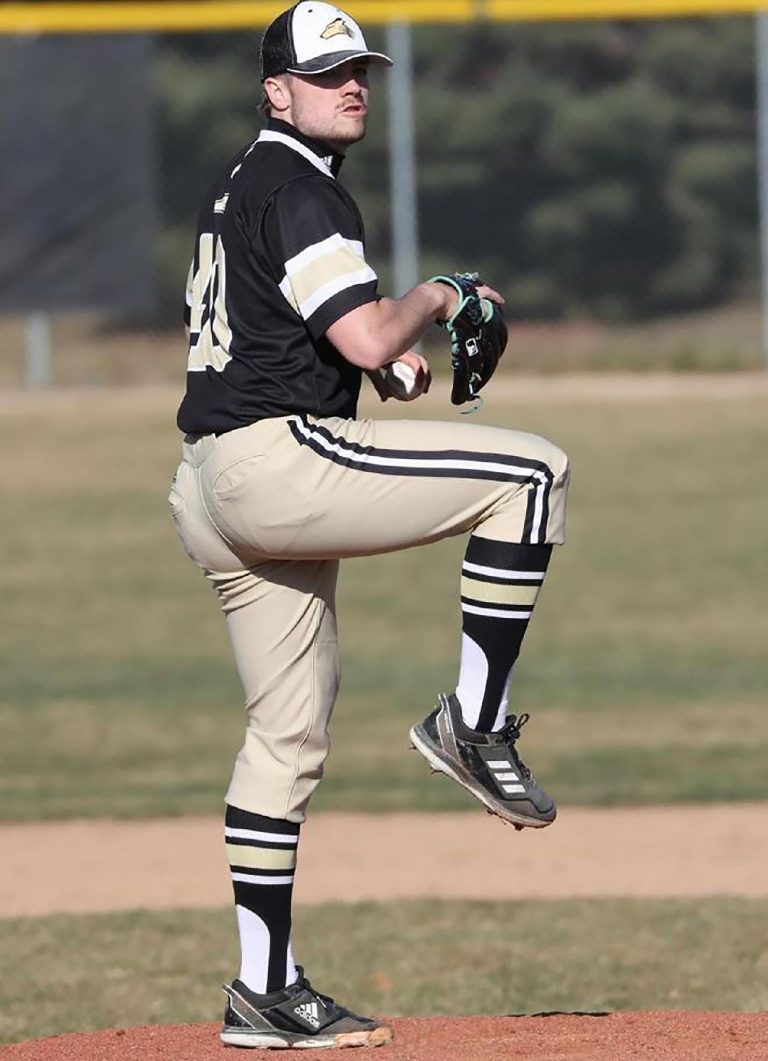 Max Brammier pitches for the Nebraska Wesleyan PrairieWolves. Photo courtesy of Paula Brammier, Max Brammier and Nebraska Wesleyan.